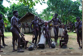 C’est ce genre d’expérience que nous avons vécue lorsque nous avons vu, émerger d’un banian gigantesque, une file d’hommes et de jeunes garçons, chantant, vêtus d’un simple étui pénien, le Big namba. Ils ont formé un cercle en dansant, chantant et frappant le sol.